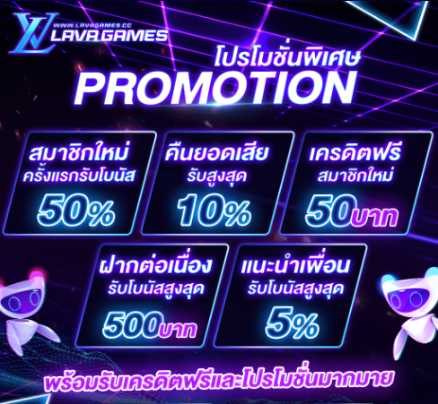 สมาชิกใหม่จะได้รับสิทธิ์พิเศษในการรับโบนัสพิเศษในการฝากครั้งแรกสูงสุดถึง 100% และยังสามารถแจ้งรับเครดิตฟรีของ LAVA SLOT ได้ทุกวัน เพียงทำตามเงื่อนไขง่ายๆ ไม่ยุ่งยาก